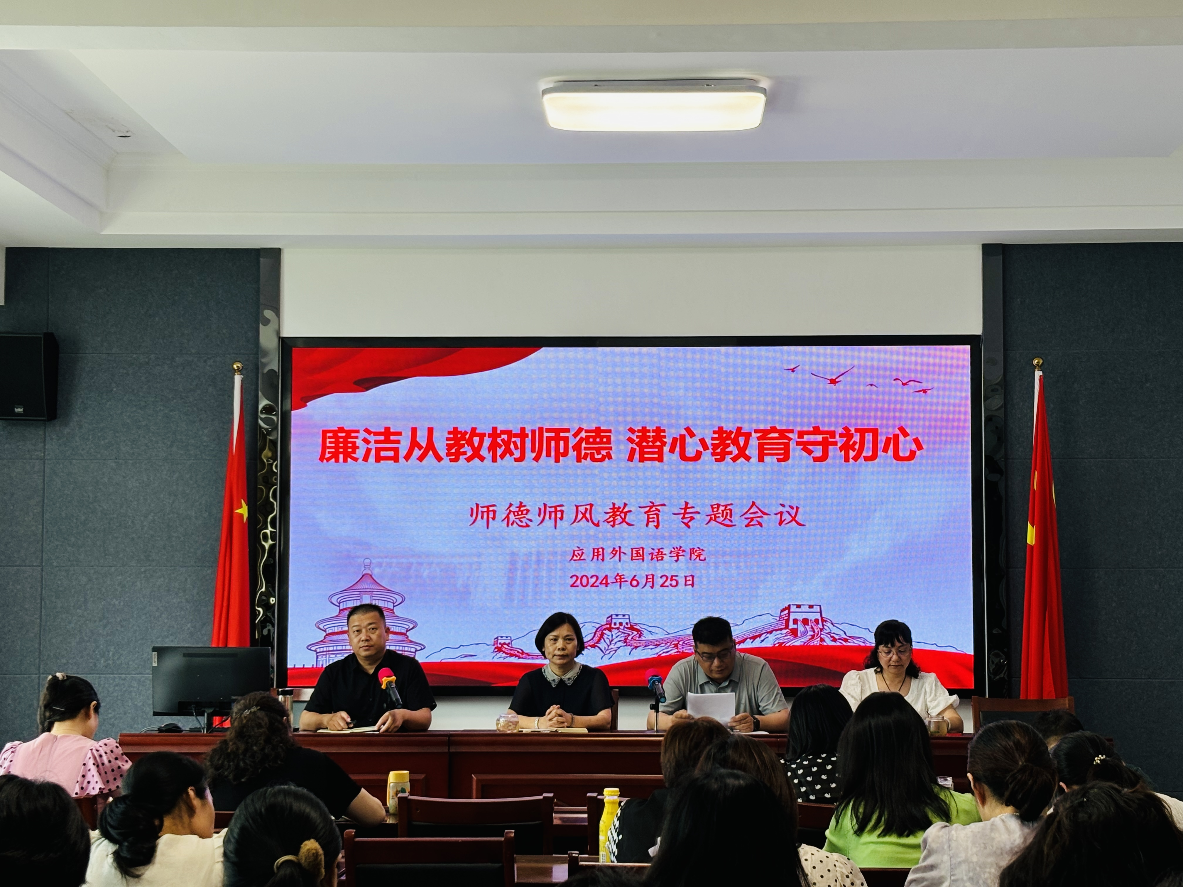 2024年6月25日下午,澳门网投十大信誉平台在2402会议室召开了“廉洁从教树师德、潜心教育守初心”为主题的师德师风教育专题会议,澳门网投十大信誉平台全体教师参加了会议。会议由澳门网投十大信誉平台副书记张泽锋主持。