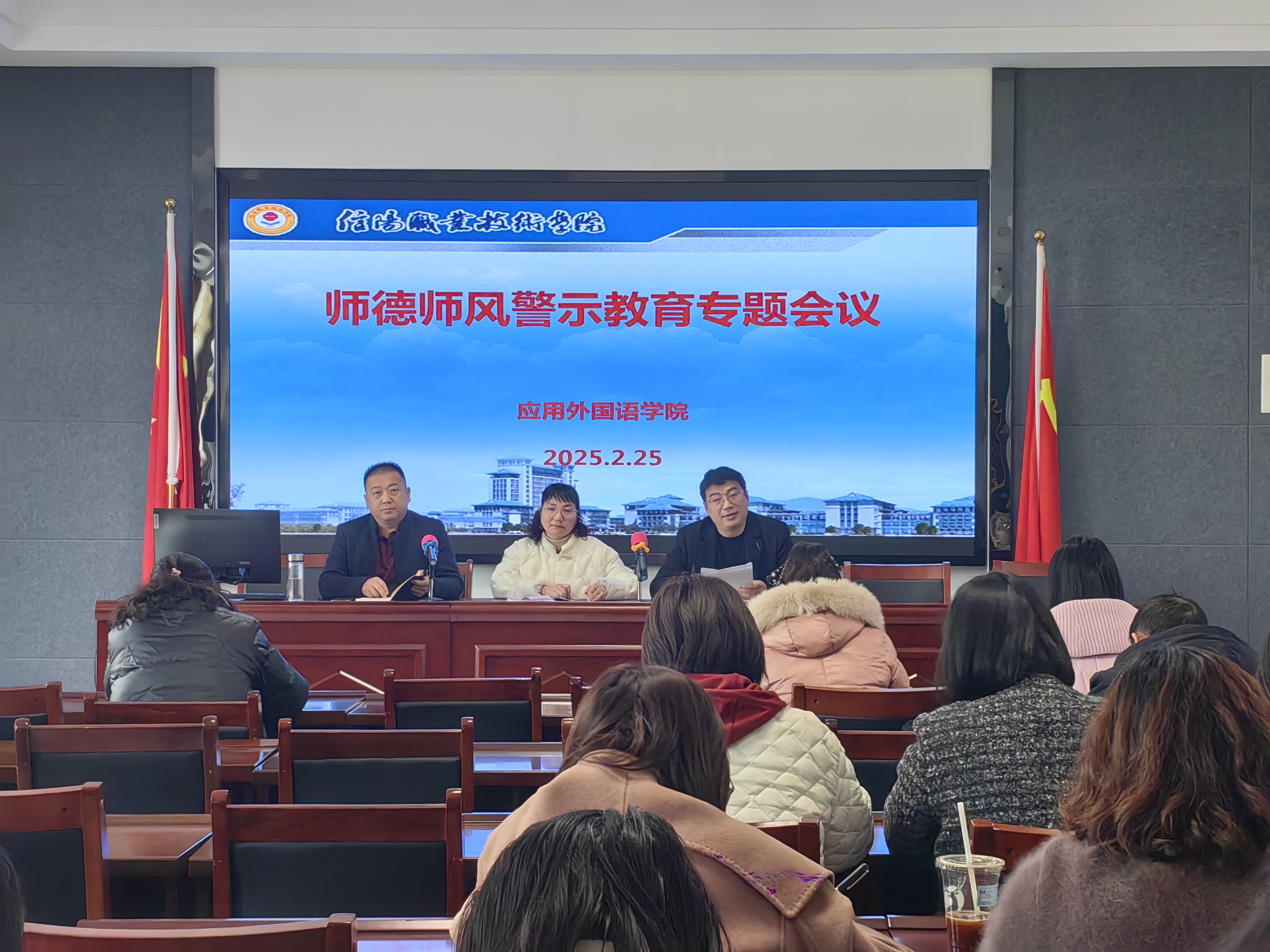 为进一步加强师德师风建设,提高教师职业道德水平,2025年2月25日下午,澳门网投十大信誉平台在2402会议室召开了师德师风警示教育专题会议,全体教职工参加了此次会议。会议由学院副书记张泽锋主持。