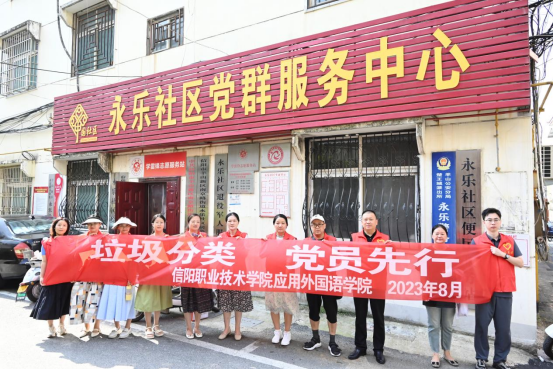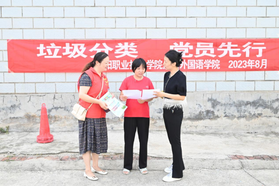 为了推动垃圾分类工作、提高社区的环境质量,不断提升党支部凝聚力、向心力,进一步加强作风建设,推动“支部联支部”活动出实效,2023年8月24日上午,由澳门网投十大信誉平台教工党支部组建的“圆梦志愿服务队”在南京路永乐社区开展“垃圾分类,党员先行”主题党日暨志愿服务活动。