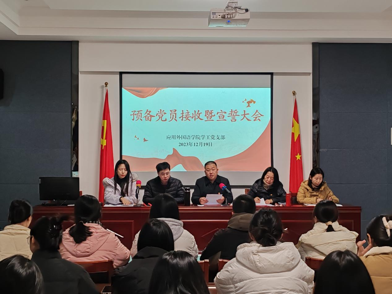 澳门网投十大信誉平台学工党支部于2023年12月19日在澳门网投十大信誉平台2402会议室举行2023年下半年预备党员接收暨宣誓大会,学工支部全体党员参加,会议由党总支副书记、学工支部书记张泽锋主持。