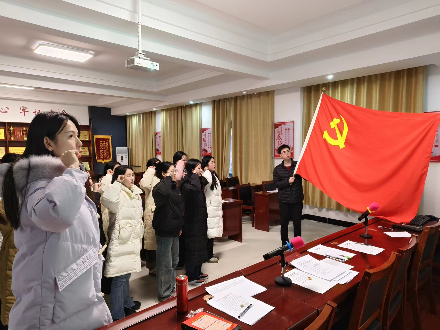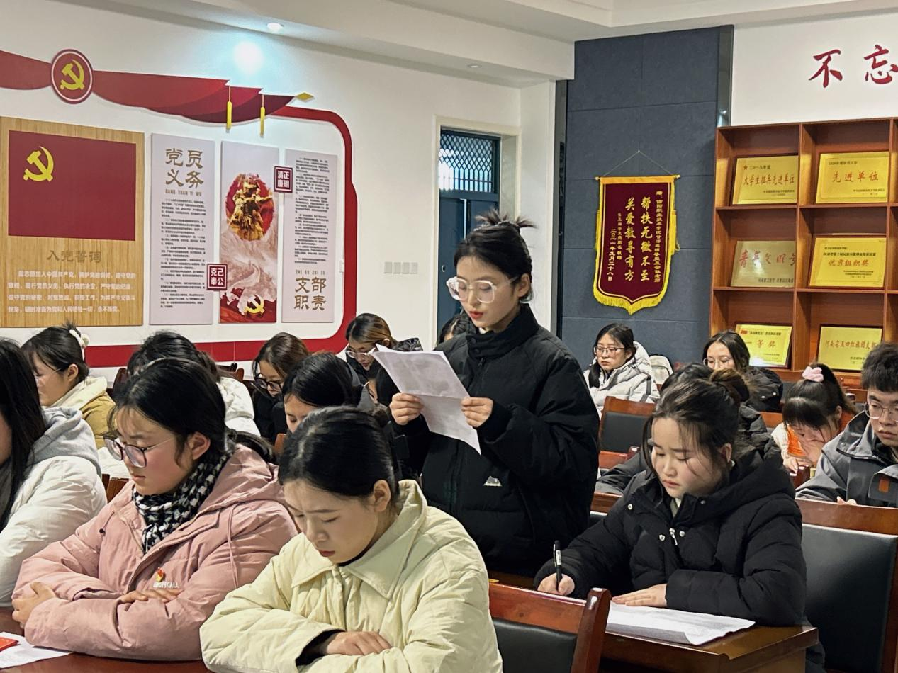 随后,严密同志带领全体新党员面对鲜红的党旗进行了庄严的入党宣誓。黄颖代表全体预备党员发言,表示将始终铭记入党誓言,坚决拥护党的领导,听从党的指挥,忠诚于党。