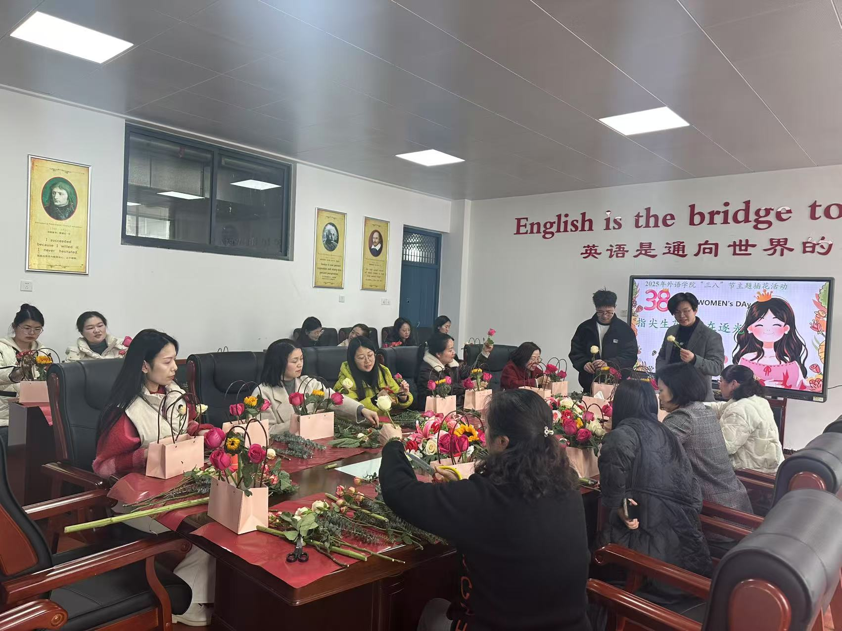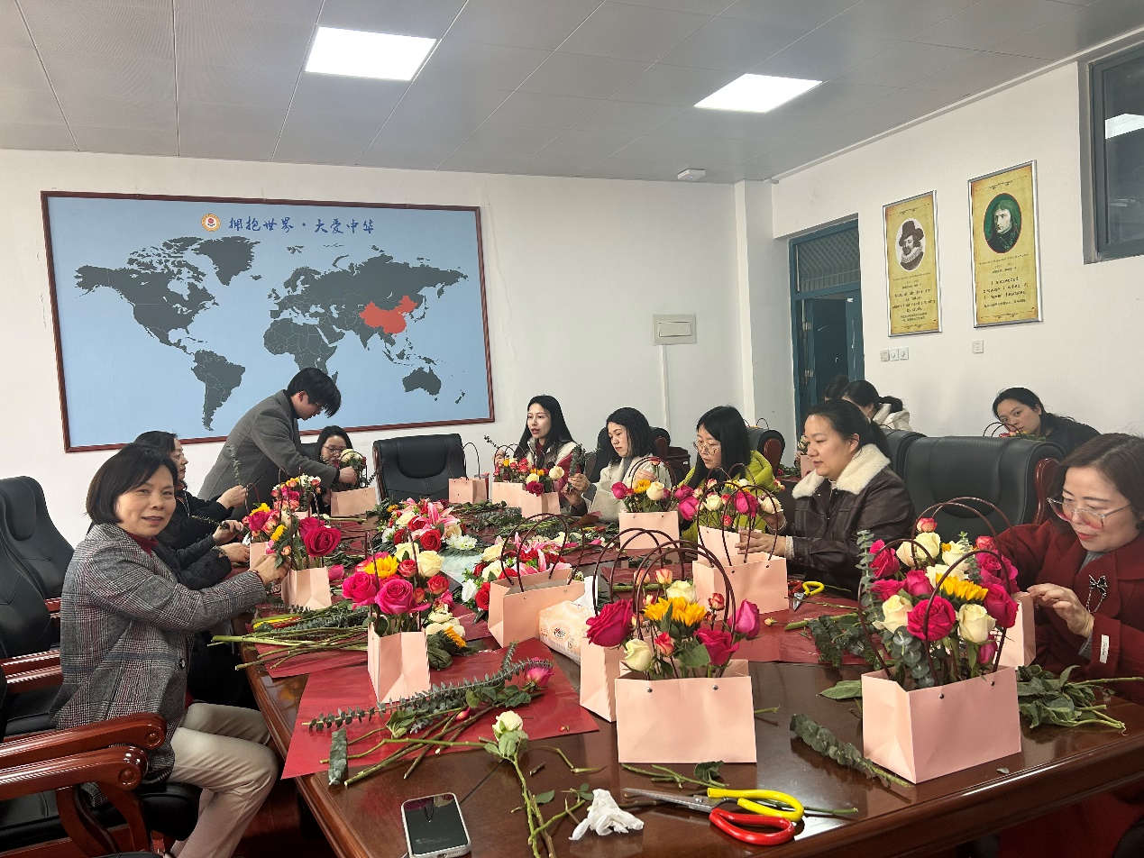 为庆祝2025年“三八”国际劳动妇女节,应用外国语学院教工党支部于2025年3月7日下午15:00在学院A2406会议室举办了“指尖生花 自在逐光”插花主题党日活动。学院女教师们欢聚一堂,在花香四溢中感受插花艺术的魅力,共度美好节日时光。