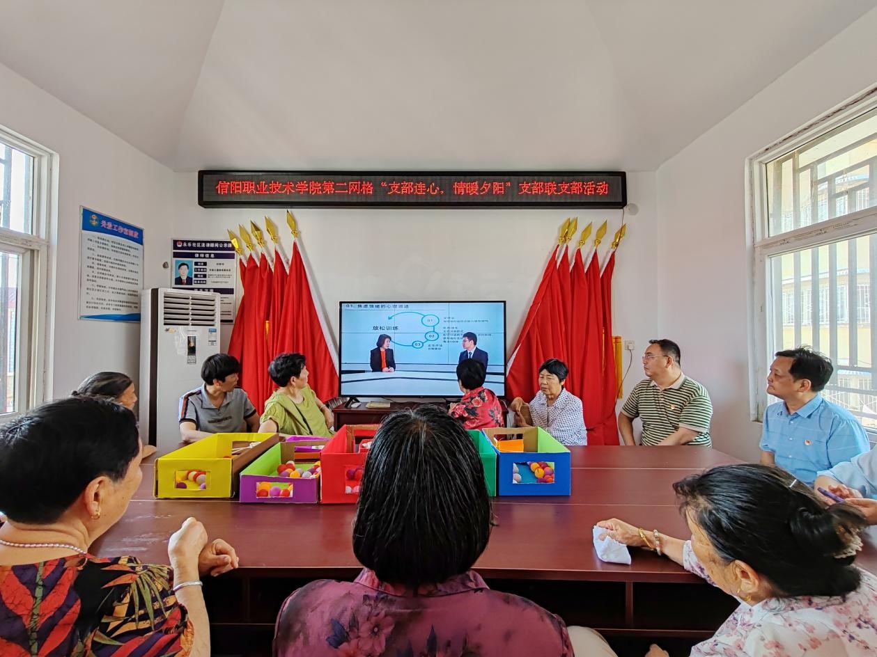 2025年6月13日,澳门网投十大信誉平台党总支牵头,联合人事处、宣传部等党支部的师生代表在信阳市永乐社区开展了“支部连心 情暖夕阳”老年心理健康主题活动,为社区老人送上关怀与温暖。