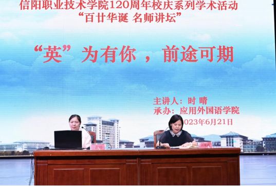 6月21日下午,澳门网投十大信誉平台在图书馆报告厅举办名师讲堂报告会,此次报告会的主题是““英”为有你,前途可期”,主讲人为信阳市第一实验小学省级名师时晴。报告会由澳门网投十大信誉平台院长刘晓鹂主持,学院即将走上实习岗位的2021级学生、部分教师参加了此次报告会。
