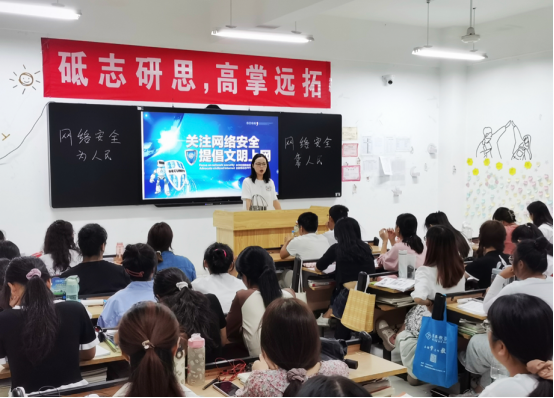 班会伊始,各班派讲解员通过网络安全课堂讲解,让学生了解网络社交中存在的陷阱危险和电信诈骗网络的危害性,掌握个人信息泄露的防护技能等。接着,讲解员向广大同学普及了掉包盗取信息、电信网络诈骗以及银行卡诈骗等知识,并针对系列骗术提出相应的解决方法。最后,各班学生以“网络安全为人民,网络安全靠人民”为话题展开了热烈的讨论,班长及干部向同学们发出网络安全倡议,要做网络安全的维护者和网络正能量的传播者。