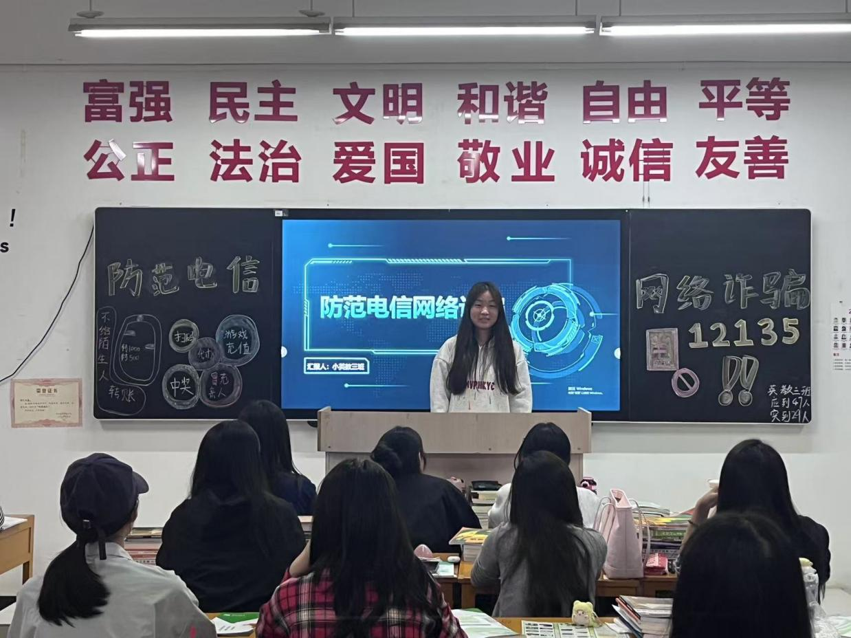 首先,各班班长播放防诈骗视频,结合案例进行分析,组织开展小组讨论,帮助同学们了解最新的诈骗手段和趋势,提高识别能力。然后,各班同学结合身边人遭遇诈骗的经历,讨论如何增强自我保护意识,防范诈骗。最后,各班班长总结诈骗的危害和防范方法,提醒同学们要学会辨别真假信息,提高警惕,自觉采取更好的防范措施。