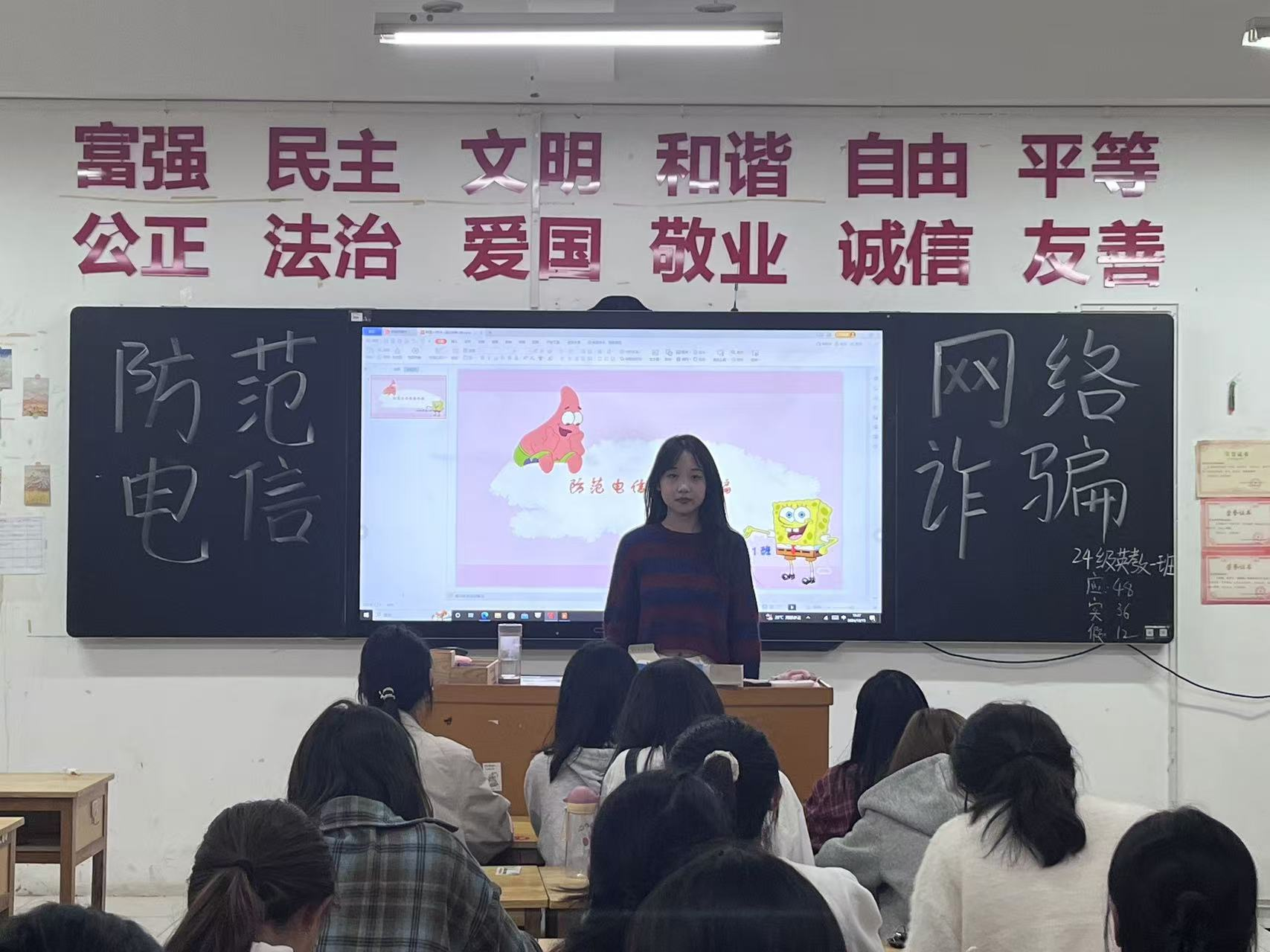 为进一步普及防诈骗知识,提高同学们的安全防范意识,澳门网投十大信誉平台于2024年10月15日晚组织开展“防范电信网络诈骗”主题班会,班会由各班班长主持。
