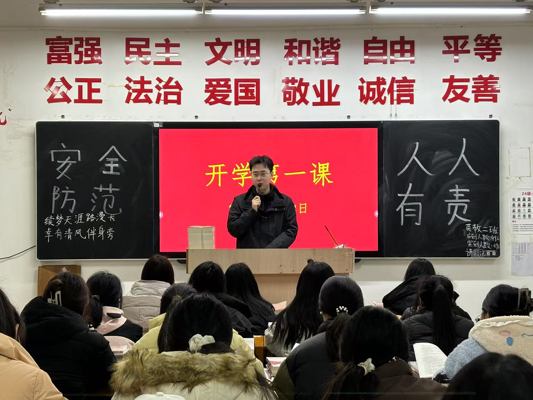 为了加强学生生命安全教育,提高学生防范意识和自救能力,营造安全稳定的生活和学习环境,澳门网投十大信誉平台于2025年2月18日晚开展开学第一课活动,各班召开“安全”主题班会,全体在校生参加。