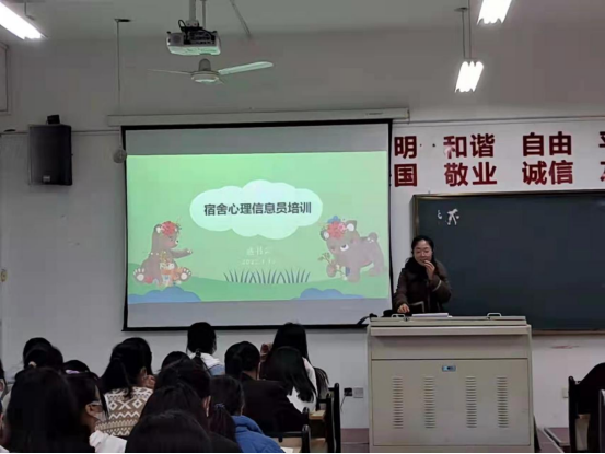 3月30日晚7点,宿舍心理信息员培训于澳门网投十大信誉平台A2429多媒体教室准时开始,参加本次培训的是全院宿舍信息员以及班级的心理委员。此次培训内容主要围绕宿舍心理信息员的工作职责、工作方法与侧重点展开,给出了具体可操作性的指导,如宿舍心理信息员及班级心理委员应如何识别心理危机、如何做好陪伴者、面对危机该如何做好监护、危机后应进行何种干预等。盛老师讲得生动易懂,同学们听得专注认真。